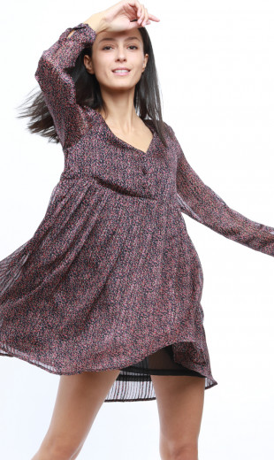 Quick view ROBE GIANNA Price €30 Robe courte à motif tacheté Manches longues Col V plongeant Motif tacheté Cordon à la taille Volants sur le bas Robe courte Coupe droite...