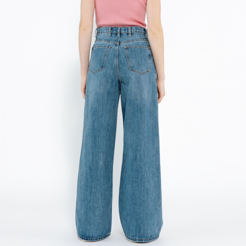 Jean ample Jean à coupe ample Longueur standard Poches latérales et arrières Bouton et fermeture éclair Composition:73% COTON 27% POLYESTER Entretien:Lavage maximum à 30°C. Ne pas blanchir. Séchage en tambour, température maximale à 45°C. Repassage au fer température maximale à 150°C. Nettoyage à sec avec des solvants usuels. _x000D_