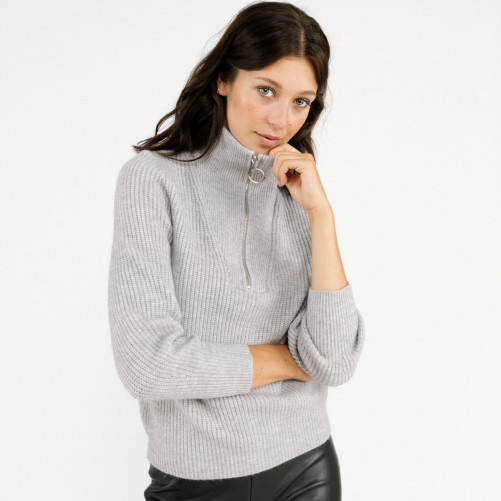 Pull à col fermeture éclair Manches longues Col montant Maille côtelée Couleur unie Longueur standard Composition:60% ACRYLIQUE 40% POLYAMIDE Entretien:Lavage maximum à 30°C. Ne pas blanchir. Ne pas sécher. Repassage au fer température maximale à 110°C. Ne pas nettoyer à sec.