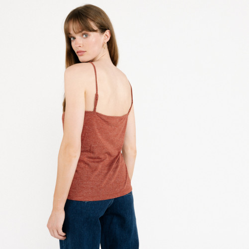 Top avec détails dentelle Fines bretelles Col V détails dentelle Couleur unie Longueur standard Coupe ample Composition:100% VISCOSE Entretien:Lavage maximum à 30°C. Ne pas blanchir. Ne pas sécher. Repassage au fer température maximale à 110°C. Nettoyage à sec avec des solvants usuels.