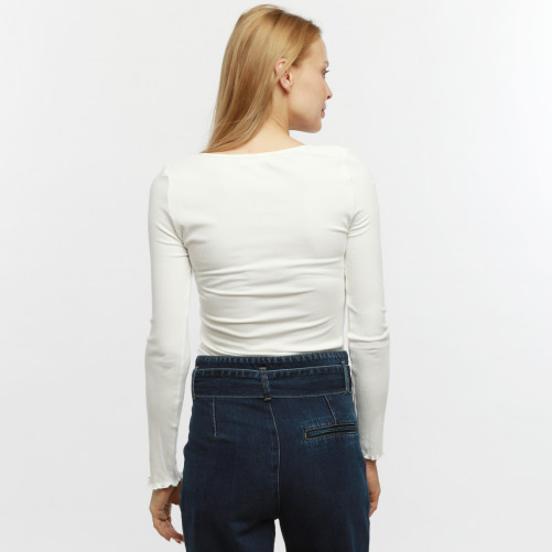 Top en maille côtelée Manches longues Fine maille côtelée Couleur unie Longueur standard Coupe près du corps Composition:92%VISCOSE 8%ELASTHANNE Entretien:Lavage maximum à 30°C. Ne pas blanchir. Ne pas sécher. Repassage au fer température maximale à 110°C. Ne pas nettoyer à sec. _x000D_