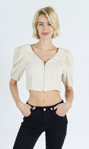 Ajout rapide TOP CHIARA Prix 19,95 € Crop top à fermeture zipée Manches ballon Fermeture éclair COMPOSITION: 100% Coton (Doublure: 100% Viscose) ENTRETIEN: Lavage maximum à 30°C. Ne...