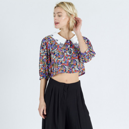 Crop top fleuri à col claudine