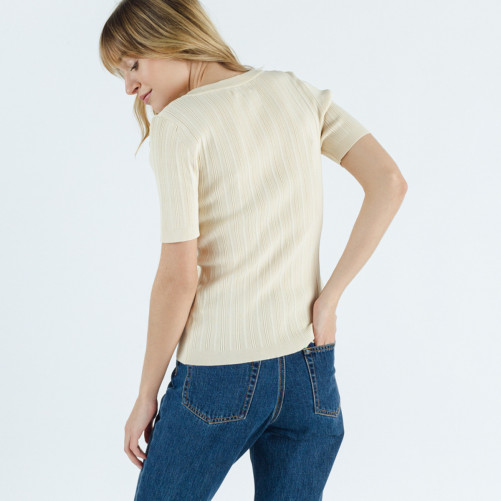 ENTRETIEN: Lavage maximum à 30°C. Ne pas blanchir. Ne pas sécher. Repassage au fer température maximale à 110°C. Nettoyage à sec avec des solvants usuels.